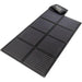 | Features | • Monocrystalline solar blanket • Constructed from heavy duty canvas covered in an anti-reflective and scratch-resistant ethylene tetraflouroethylene (ETFE) coating, making them extremely durable and perfect for off-road • conditions • Built-in bypass diodes connect each solar window to minimise the • impact of shadows, ensuring maximum solar capture • Features a genuine Anderson 50A connectors for plug ‘n’ play convenience • Max power voltage: 18V • Max power current: 8.9A • Open circuit voltage: 21.5V • Short circuit current: 9.5A • Open dimensions: 1635 x 740 x 2.5mm • Closed dimensions: 365 x 365 x 50mm |