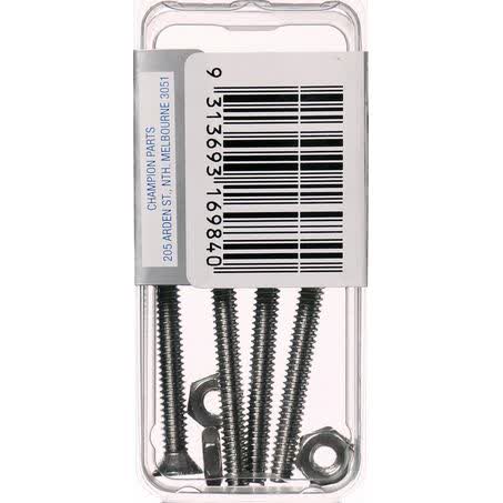 | Unit of Measure | PACK | Description | Champion Machine Screw & Nut CSK Phillips Stainless Steel 3/16inx2in 316/A4 |